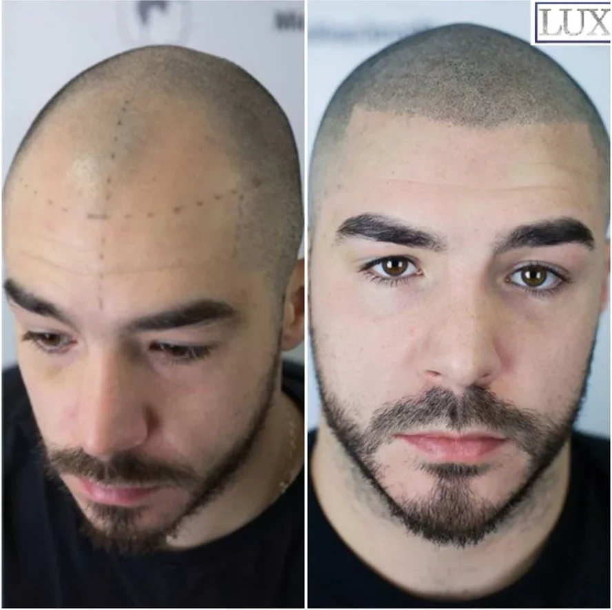 ✅ Inicio del procedimiento y preparación del cliente: desde el afeitado del cuero cabelludo hasta los primeros puntos aplicados.